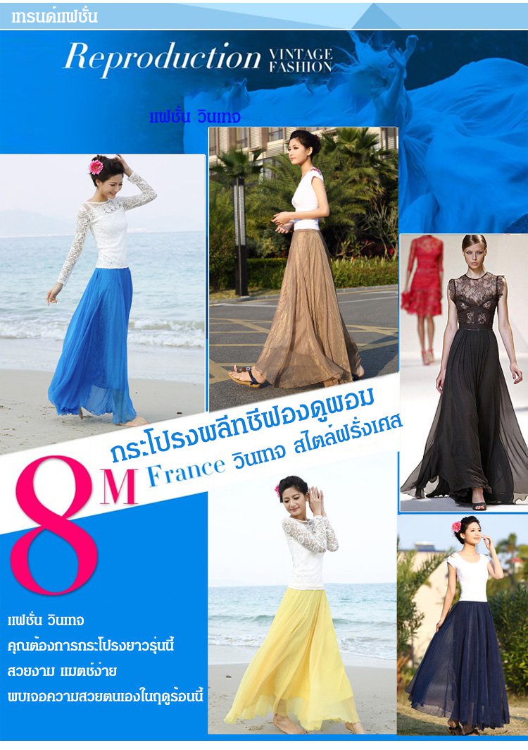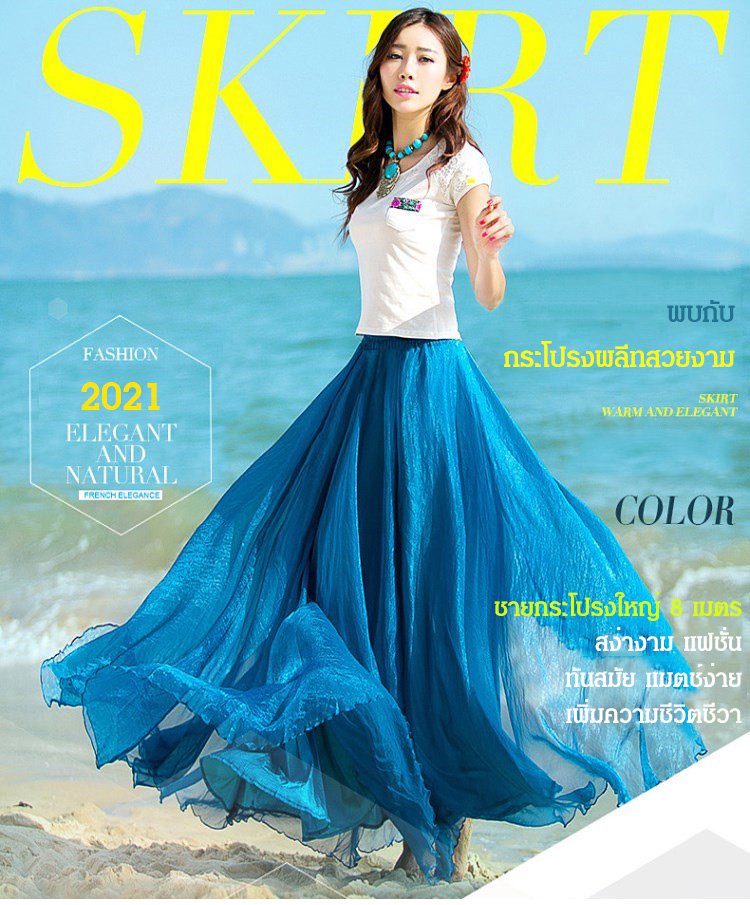 กระโปรงยาวพลีทชีฟอง ใส่ได้ 3 แบบ