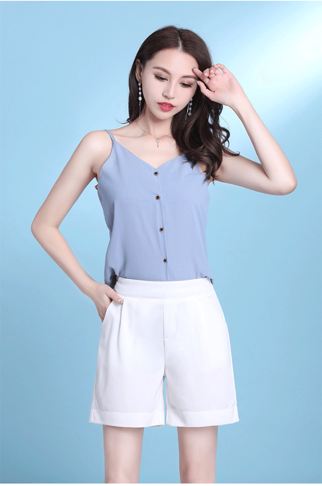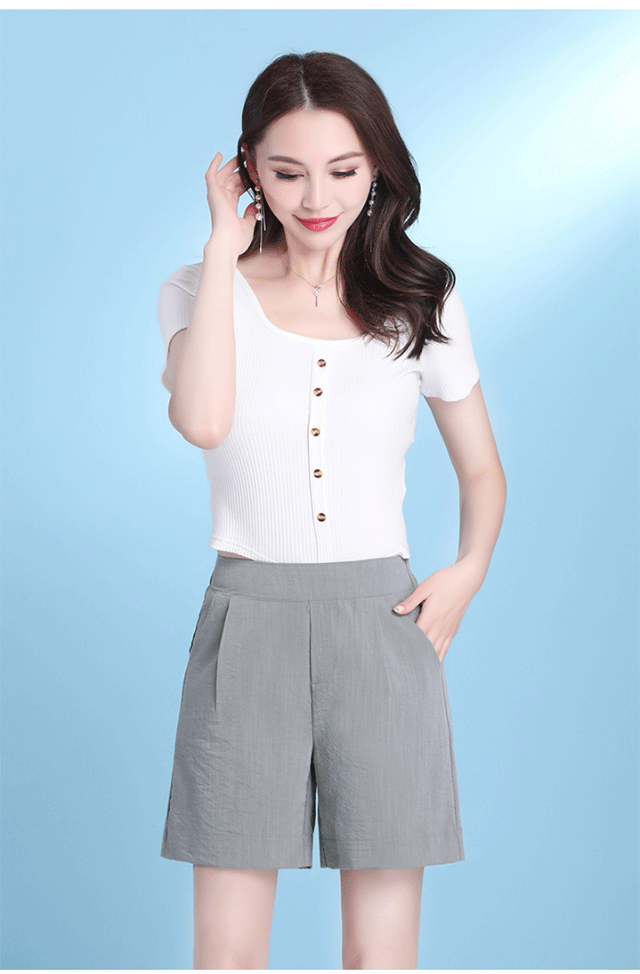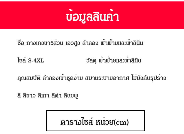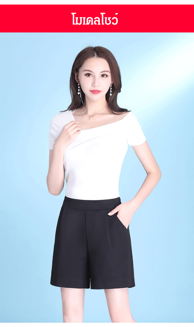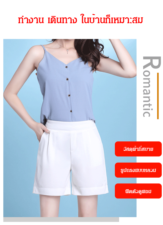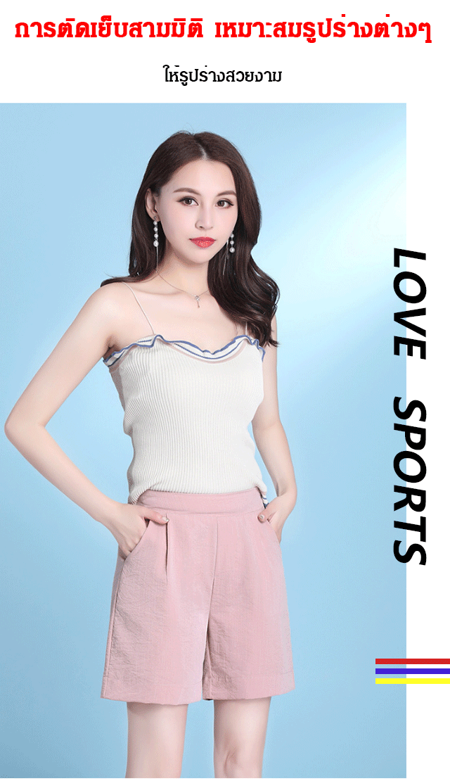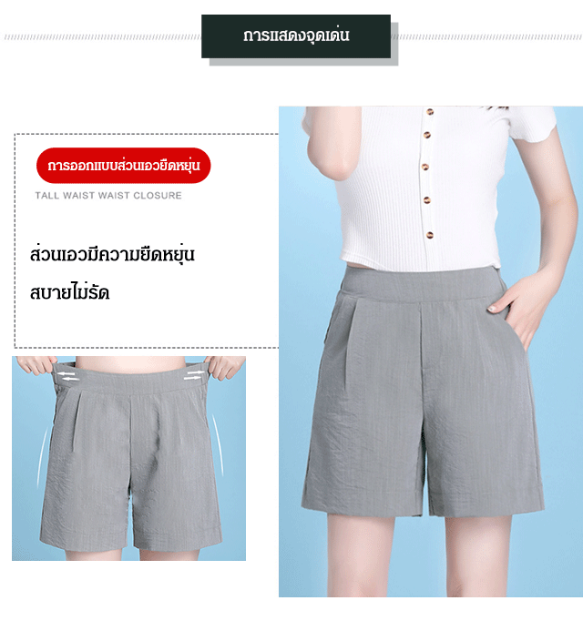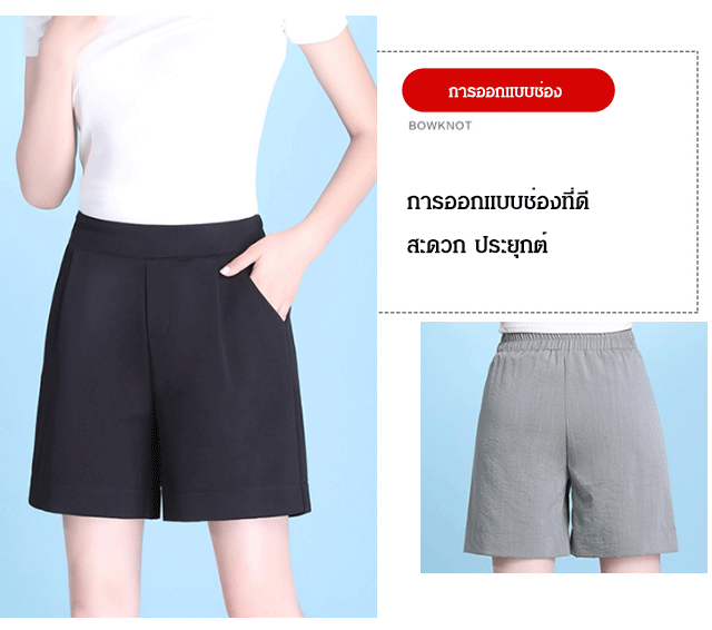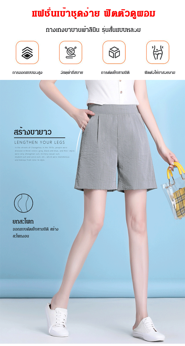 กางเกงขา5ส่วน เอวสูง ลำลอง ผ้าฝ้ายและผ้าลินิน
