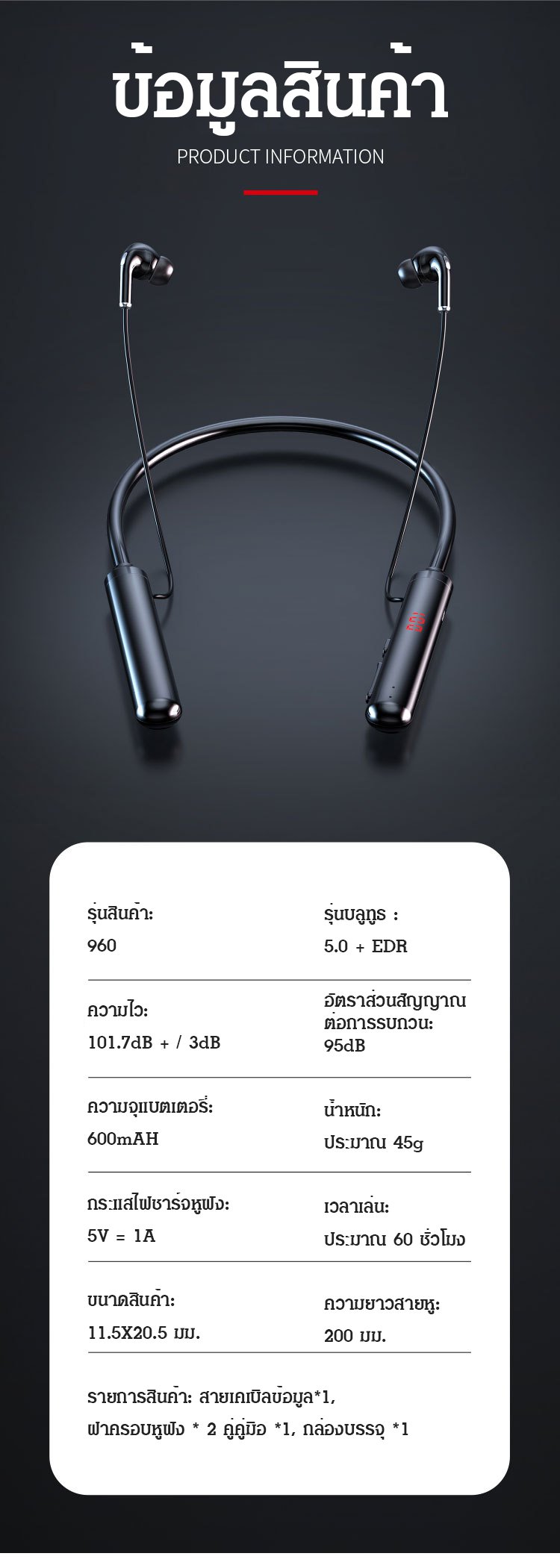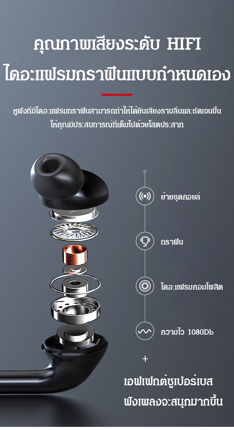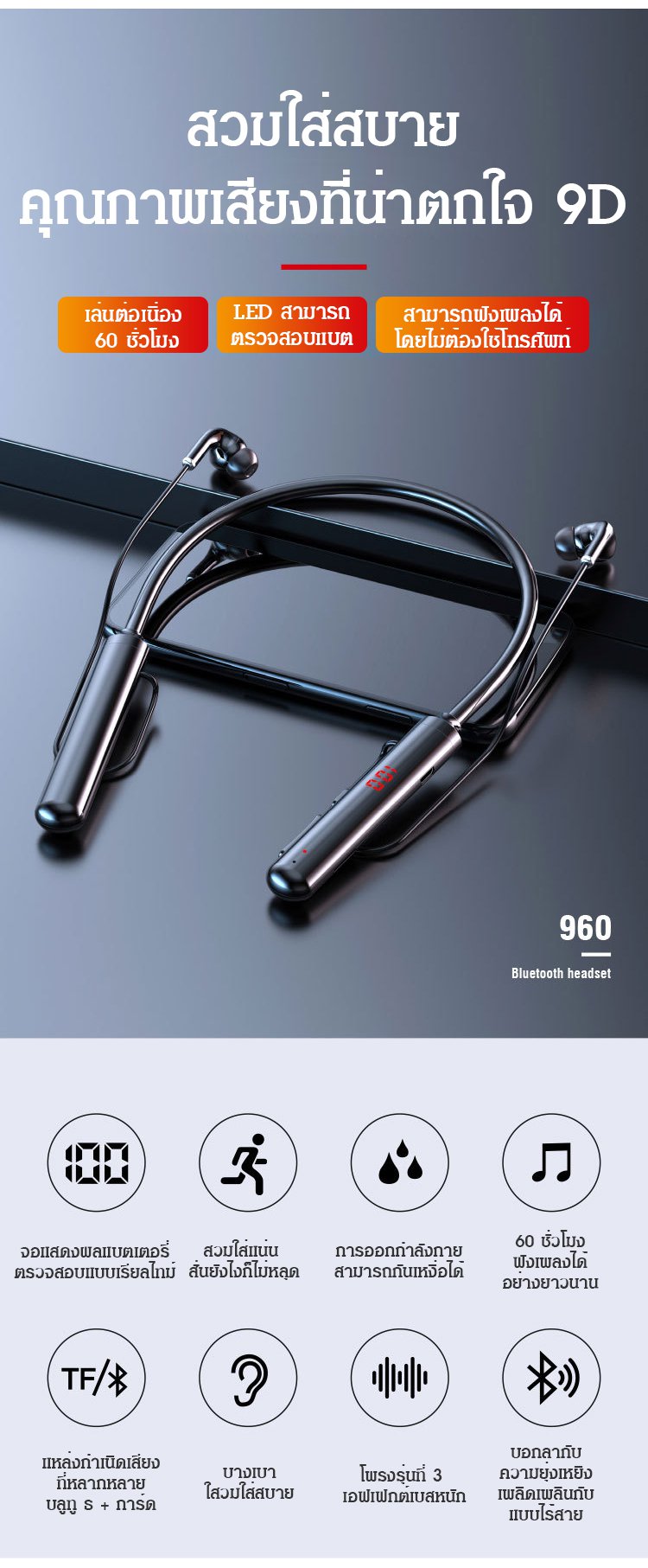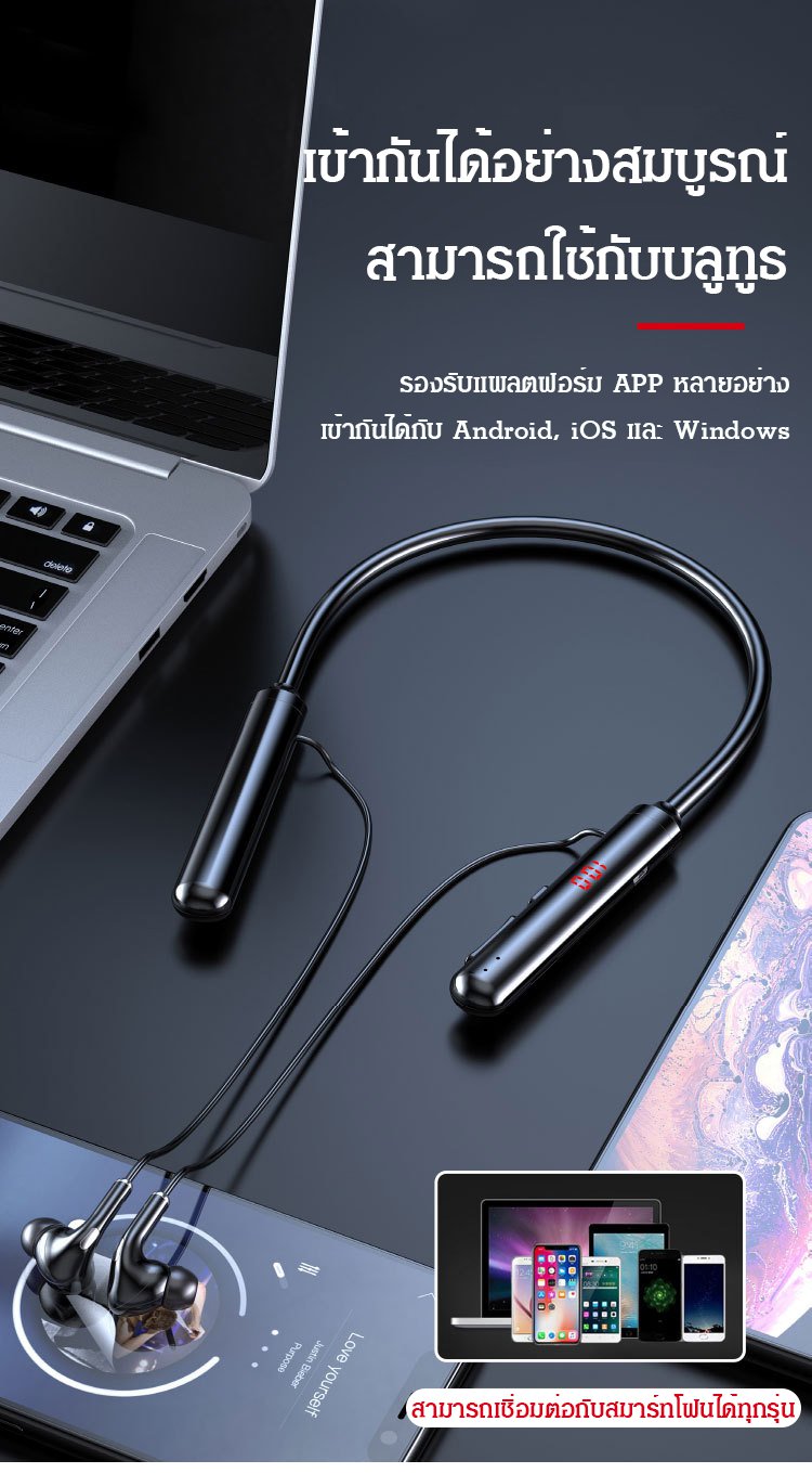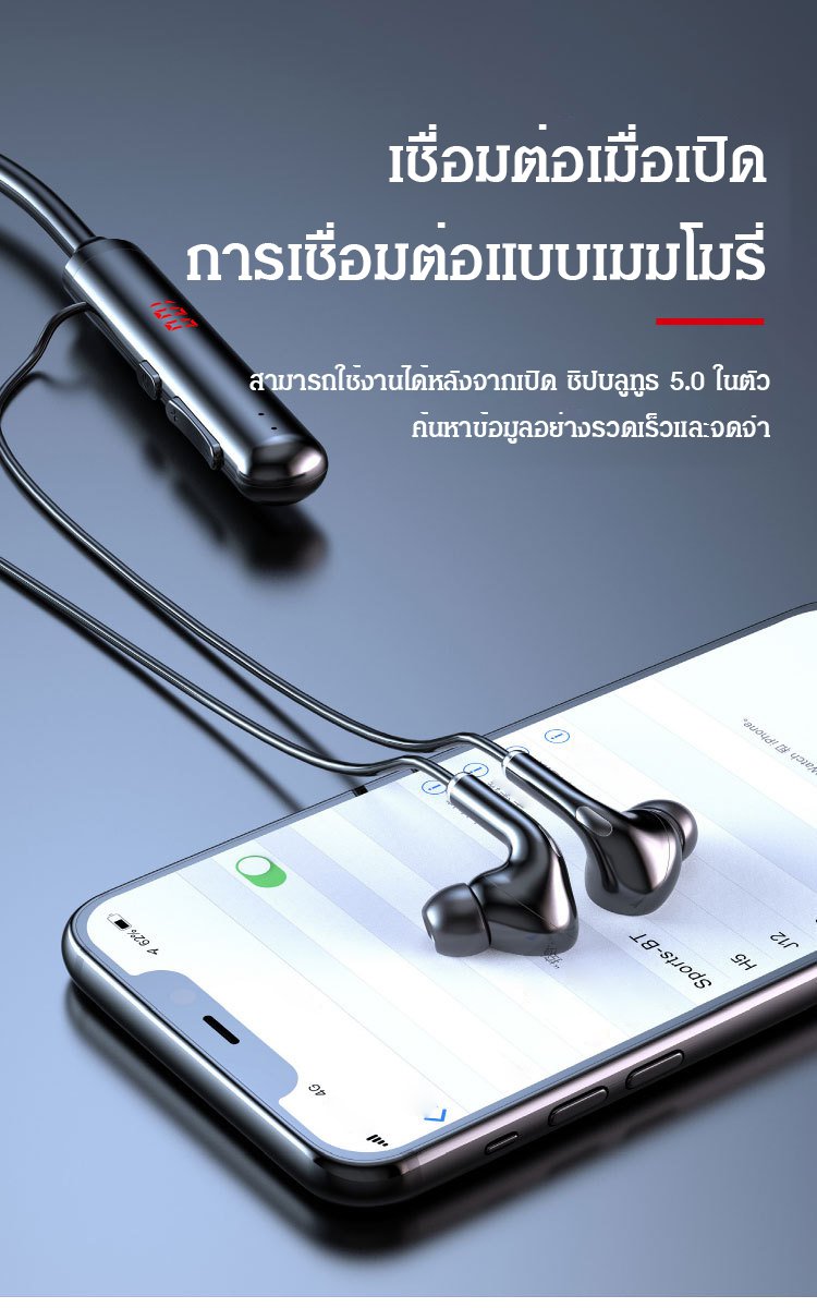 บลูทูธ 5.0 แบบคล้องคอพอดีหู หูฟังใส่วิ่งได