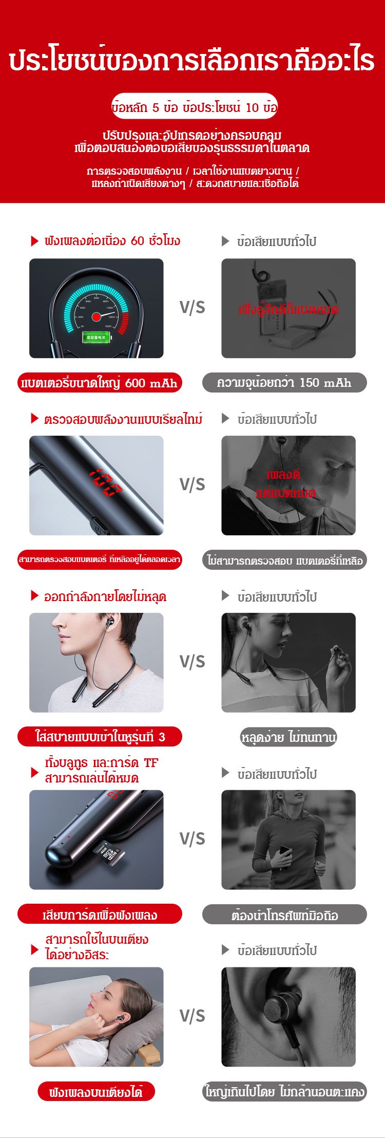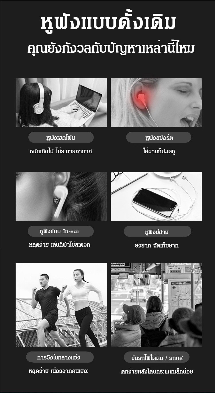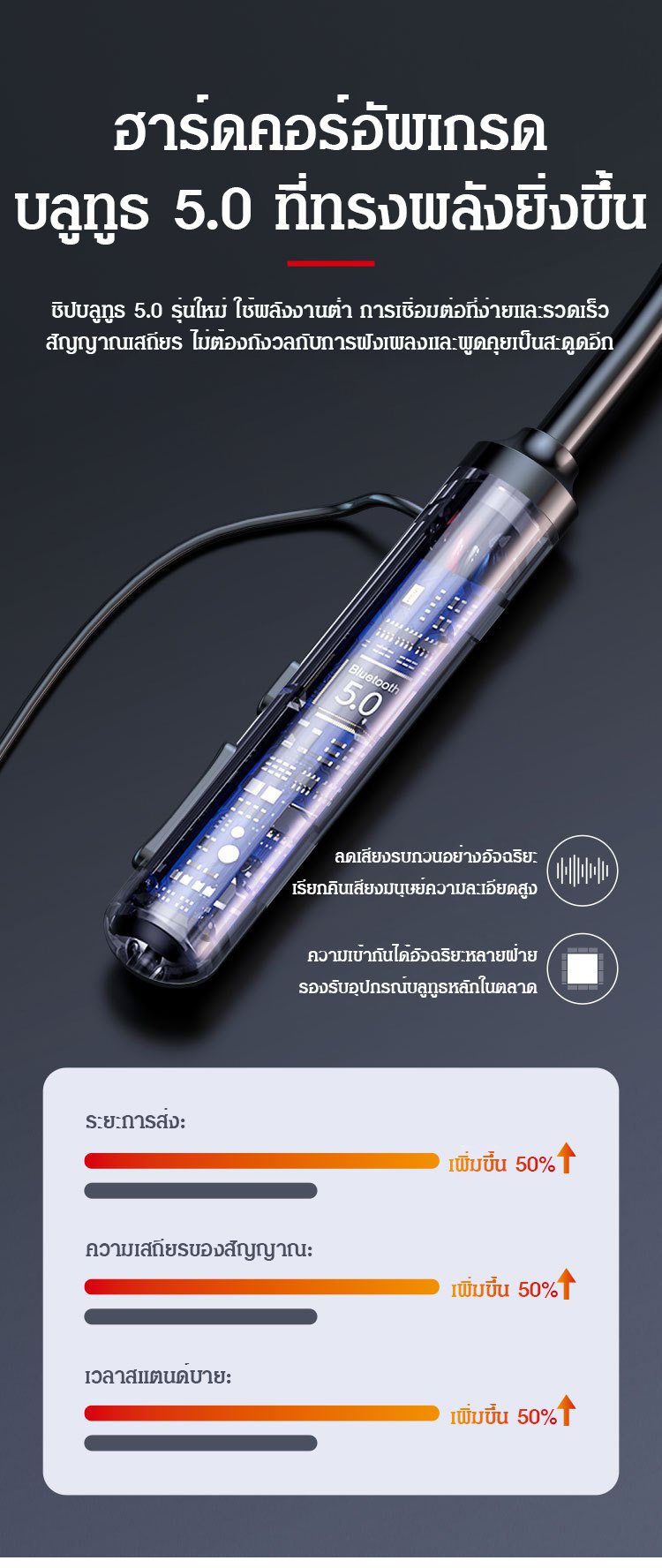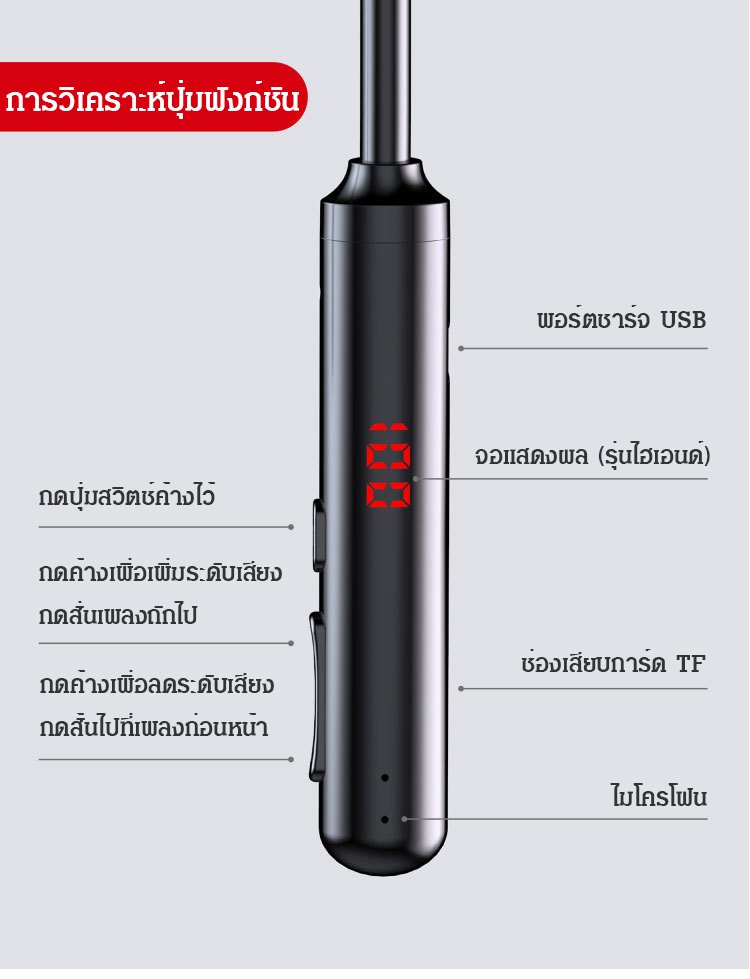 บลูทูธ 5.0 แบบคล้องคอพอดีหู หูฟังใส่วิ่งได